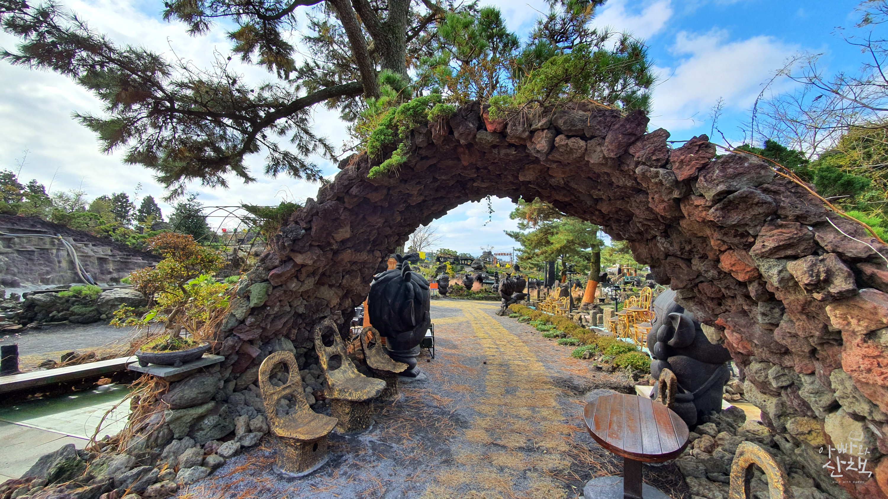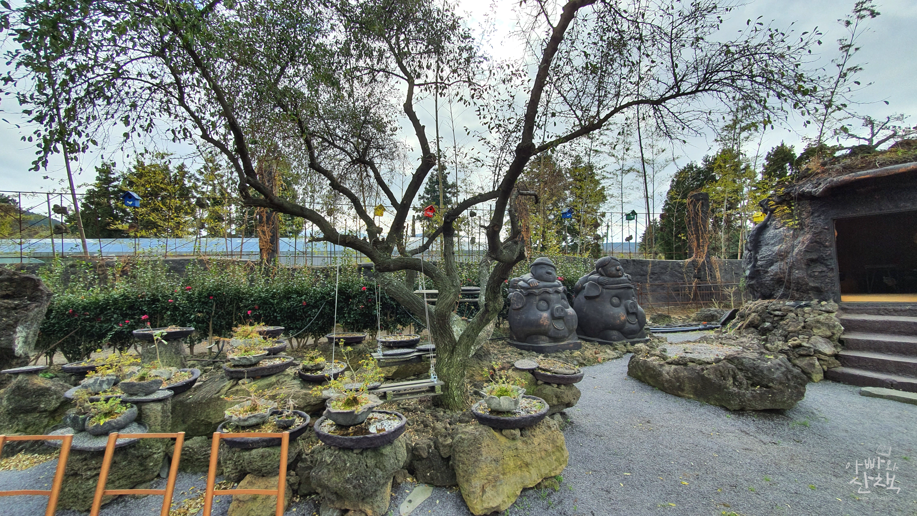 카페 내부를 통해 정원으로 들어갈 수 있는데, 정원의 산책로를 따라 걷다 보면 범상찮은 나무들과 분재, 재미있는 모양의 조형물, 다양한 테마의 포토존이 있어 구경하는 재미가 기대 이상입니다. 정원 곳곳에 테이블과 의자가 있어서 쉬어가며 즐기기에 좋고 차를 마시며 이색 정원의 즐거움을 만끽하기에도 좋습니다.