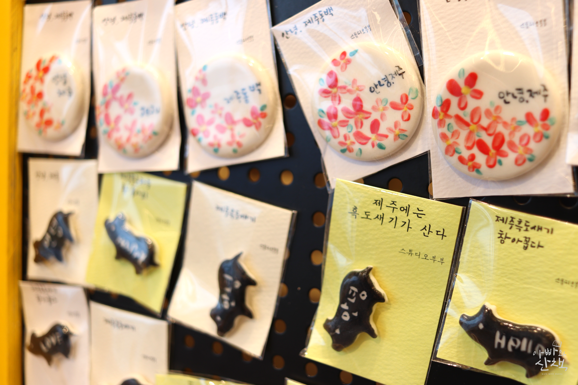 판매하는 소품 하나하나가 작가의 개성과 아이디어가 넘치는 탓에 구경만 하려고 방문했다가도 그냥 지나치기가 쉽지 않습니다. 제주 여행을 추억할 기념품들 외에도 제주를 상징하는 디자인 요소가 녹아들어 있는 다양한 생활 소품들과 함께 제주 인기 먹거리도 판매하고 있어서 지인들을 위한 개성 있는 선물과 함께 나를 위한 소장품을 구입하기에도 좋습니다.