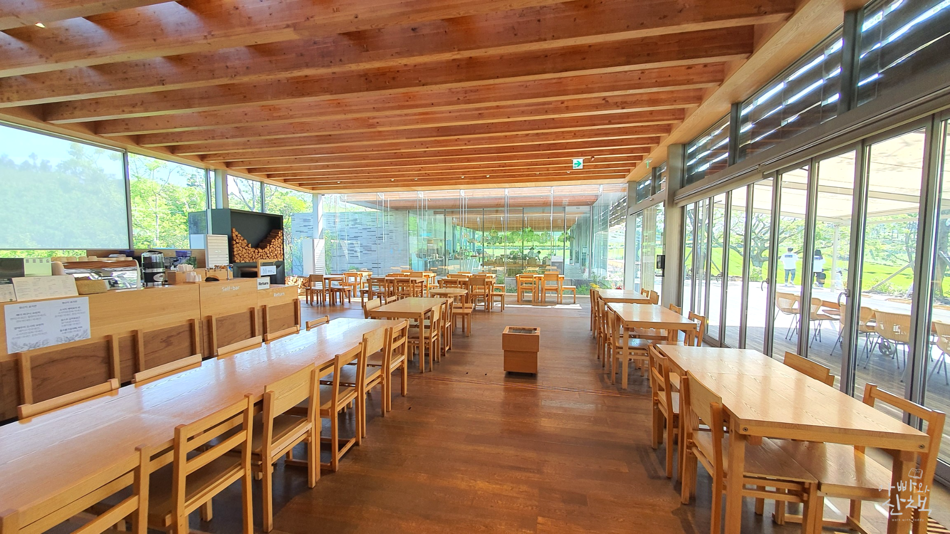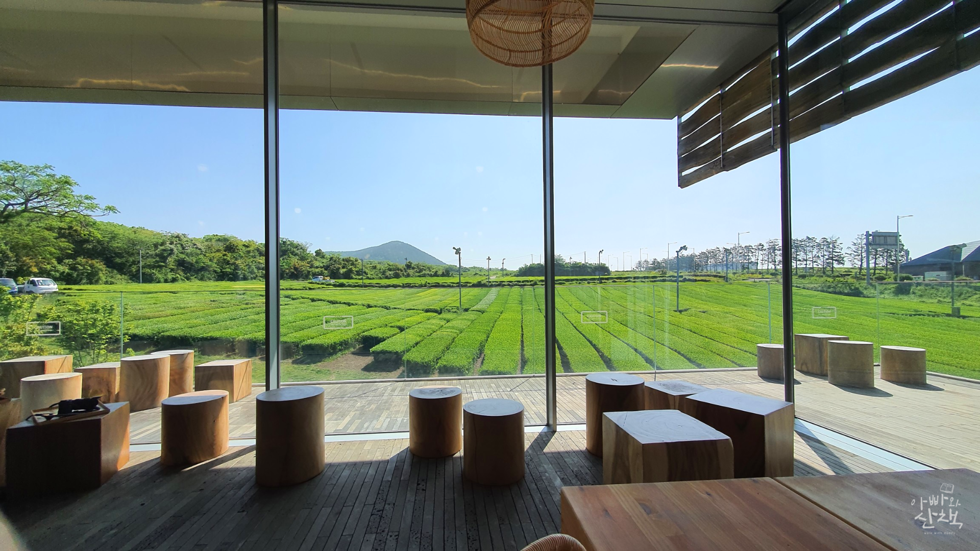 내부가 넓어서 오설록티뮤지엄에 비해 덜 붐빌 뿐만 아니라, 전면 유리를 통해 실내에서도 서광차밭 풍경을 감상할 수 있어서 비 오는 날에 방문해도 좋습니다.