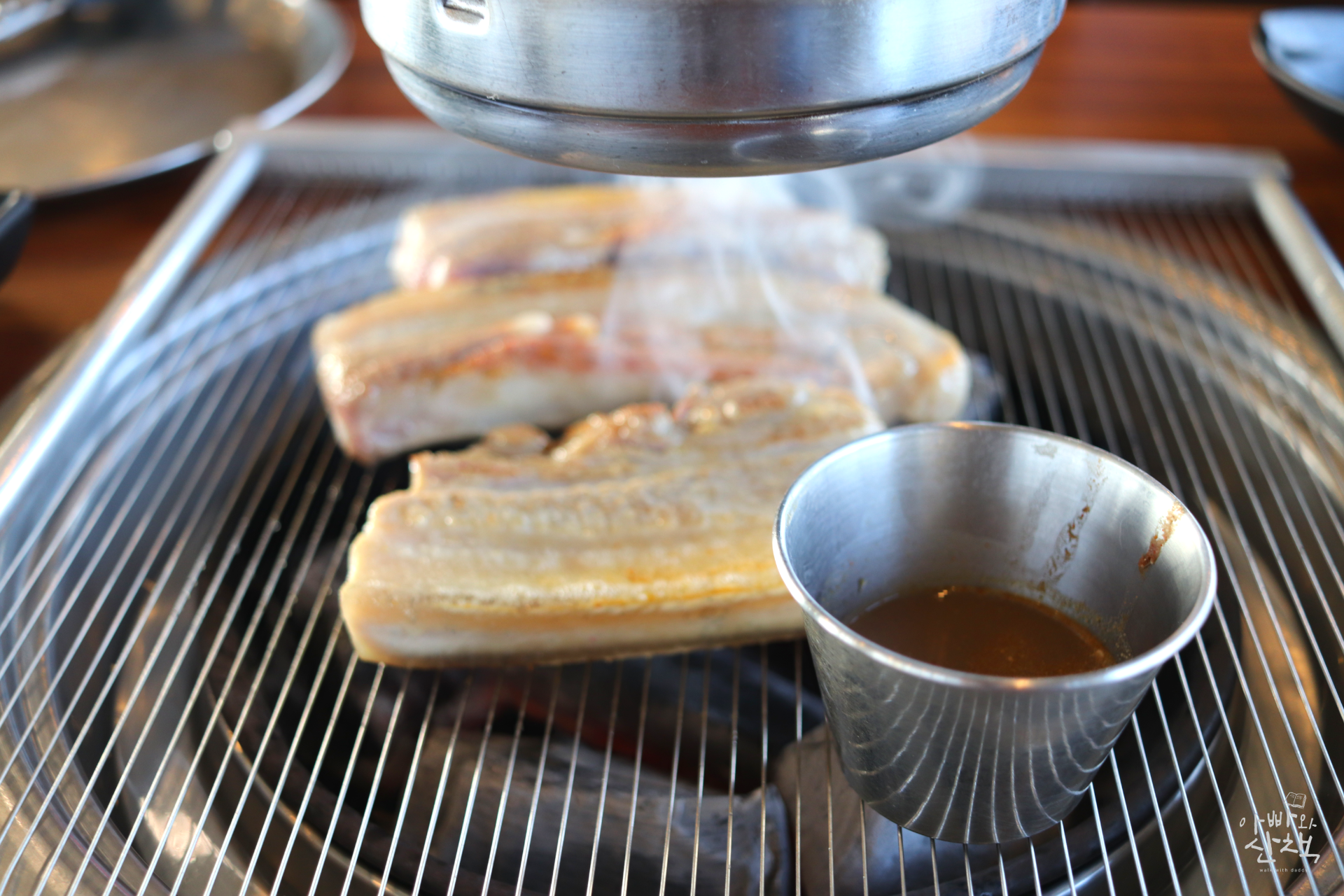엄선한 1등급 암퇘지 고기를 숙성하여 최고급 숯인 비장탄에 구운 고기가 겉은 바삭하고 속은 쫄깃한 흑돼지의 맛을 제대로 느끼게 해주는 곳입니다. 사장님의 고기에 대한 자부심뿐 아니라 반찬 하나하나 제주산 식재료를 사용하여 믿음직스러운 곳으로 정원 너머로 보이는 바다와 반대편의 한라산의 모습이 흑돼지 맛을 더해줍니다. 아이들이 뛰어놀기 좋은 널찍한 정원과 깔끔한 내부, 여유 있는 테이블 간격까지 가족 여행자에게 추천하고 싶은 곳으로 3인분 이상 고기 주문 시 옥돔구이가 서비스로 제공됩니다.