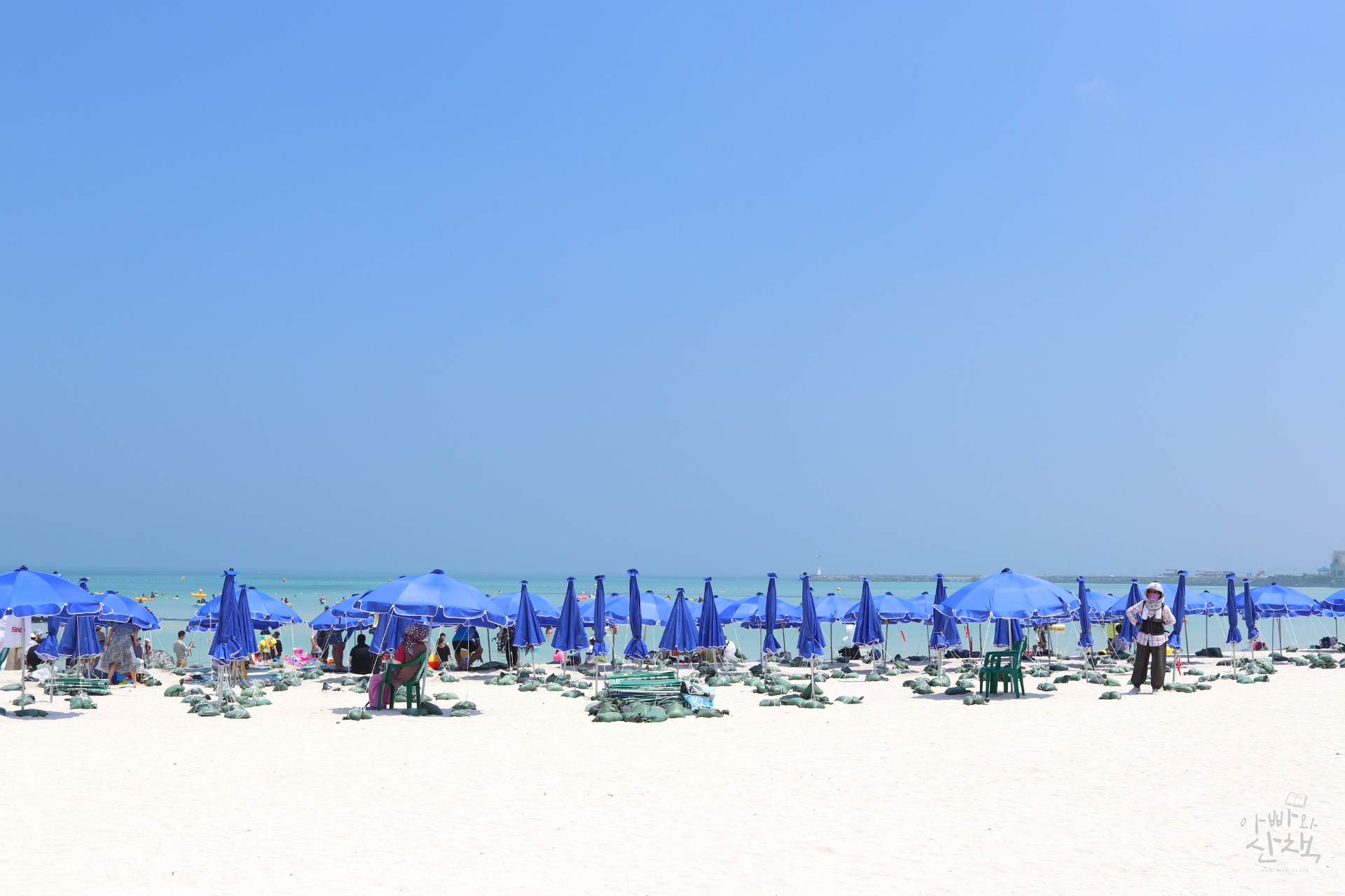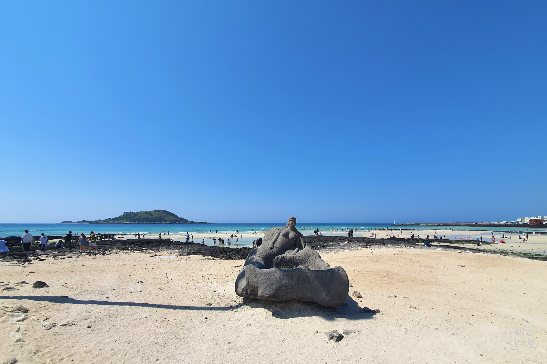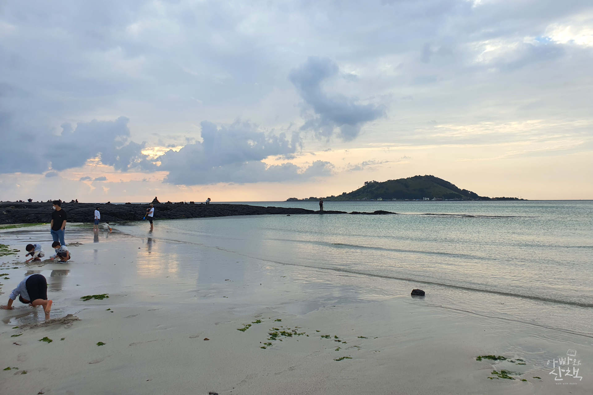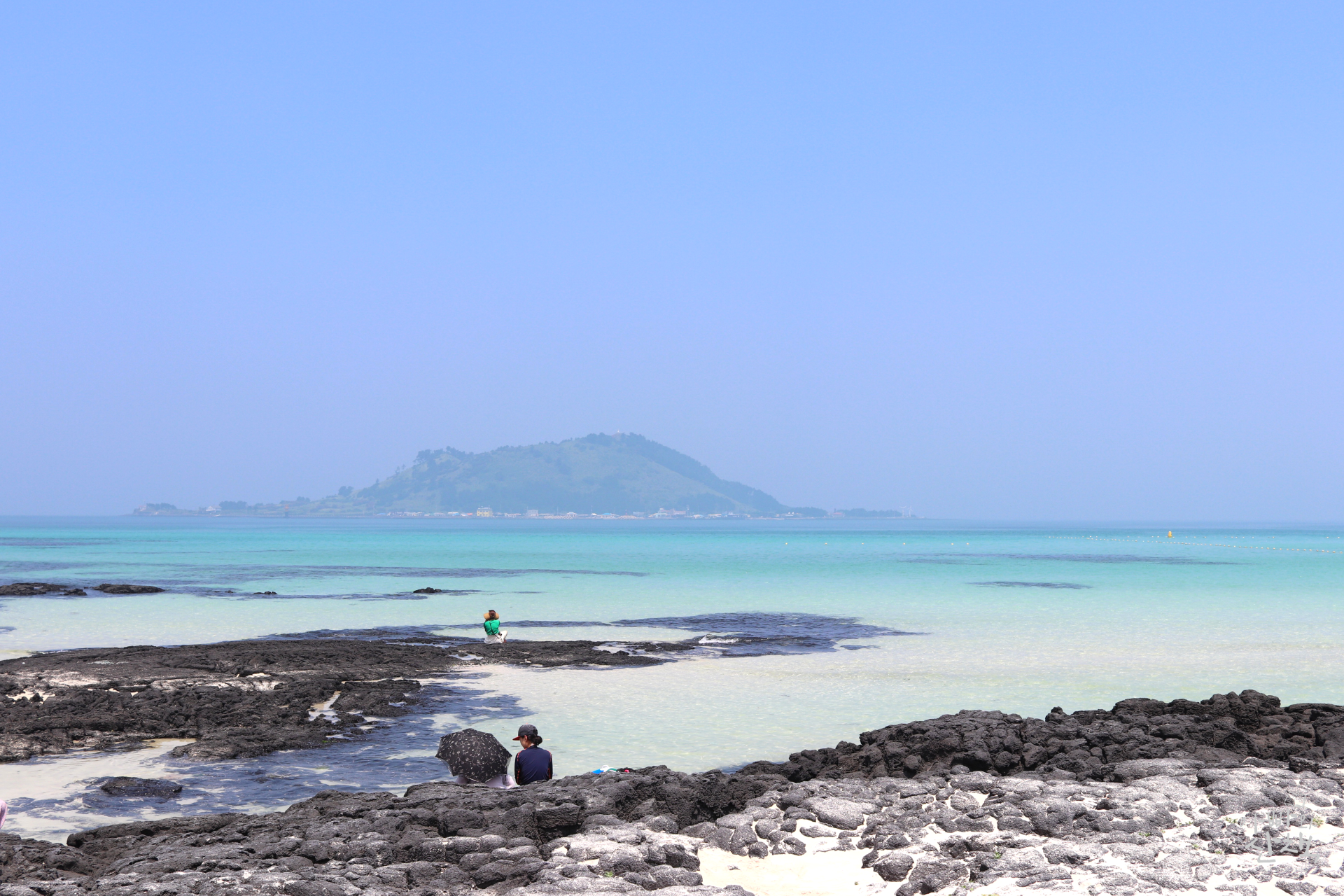 에메랄드빛 바다와 얕은 수심으로 인기가 많은 제주의 대표 해수욕장