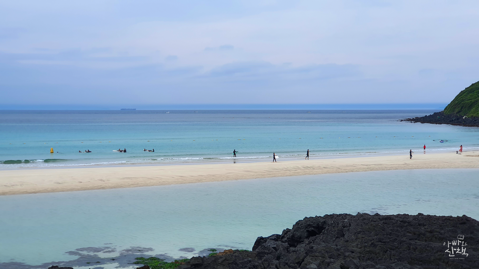 아이가 있는 가족이 즐기기에 좋은 이국적 풍경의 해수욕장