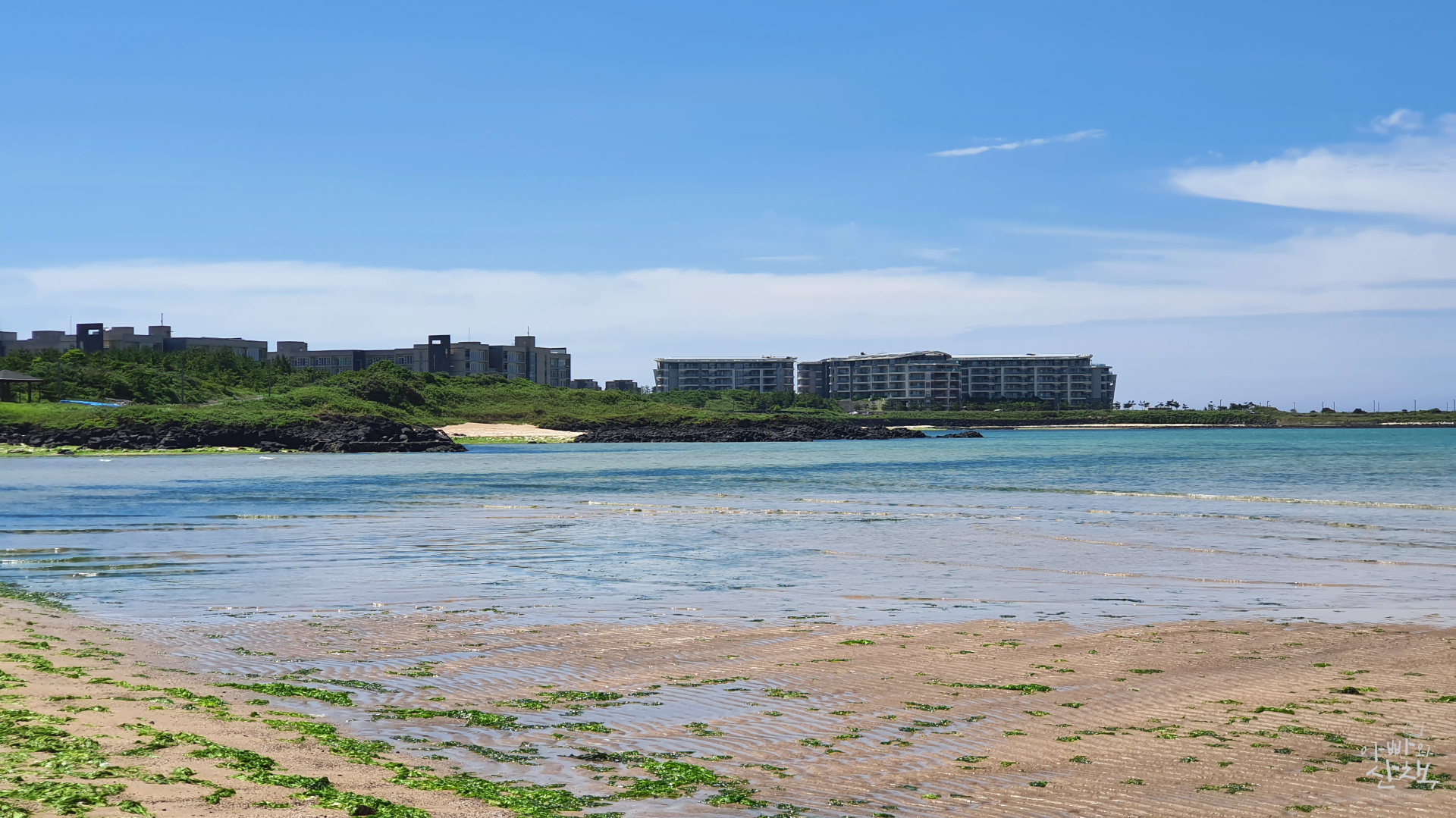 얕은 수심과 잔잔한 파도로 아이들과 가기 좋은 성산의 해수욕장
