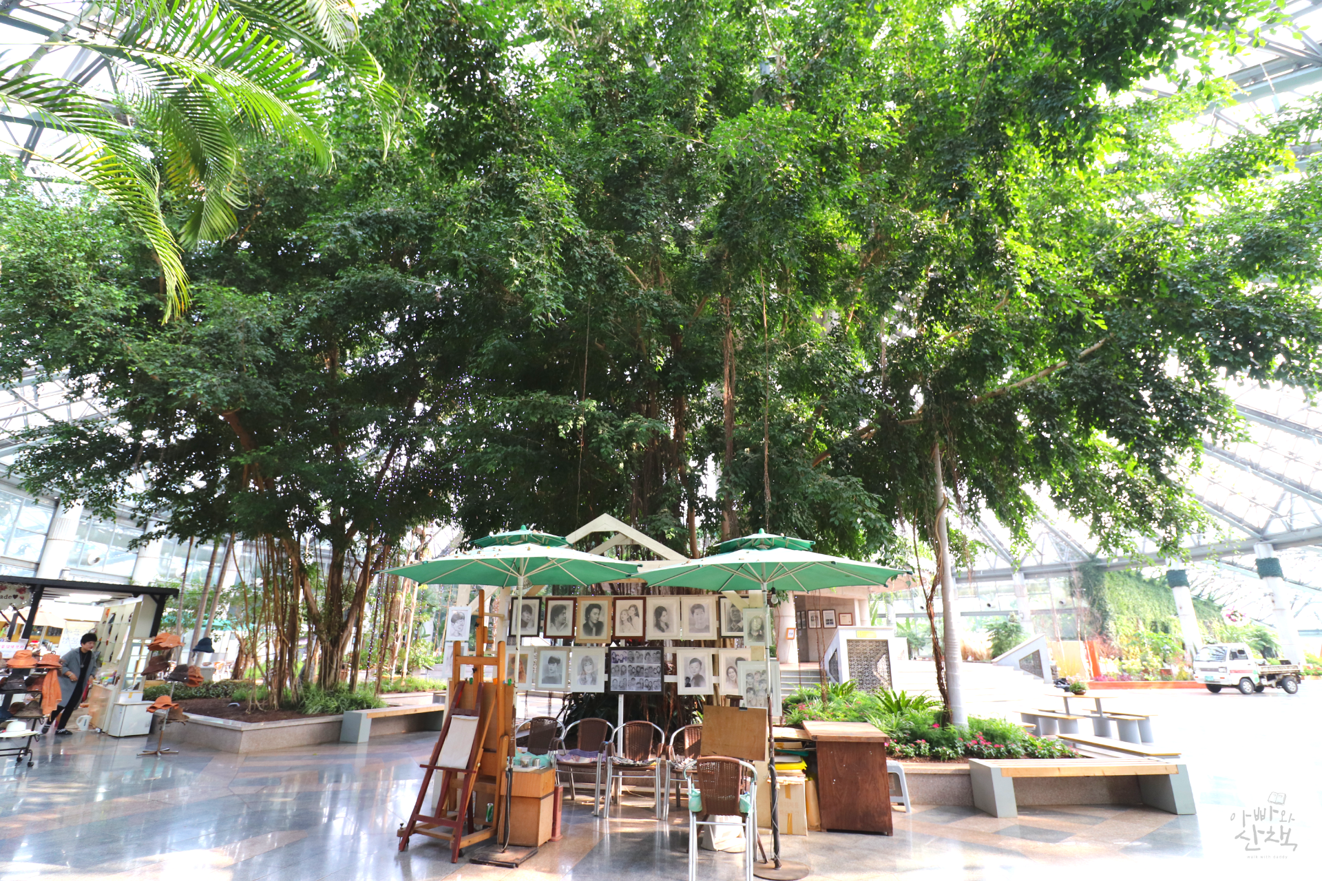 실내에 들어서면 큰 규모에 놀라고 유리 천장을 통해 들어오는 햇살에 감탄하게 됩니다.