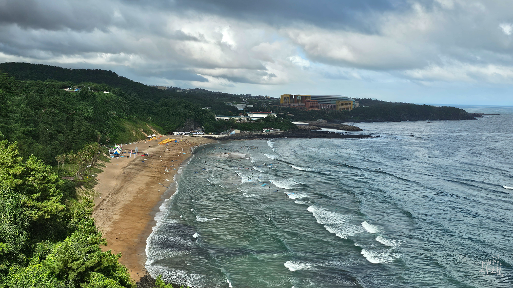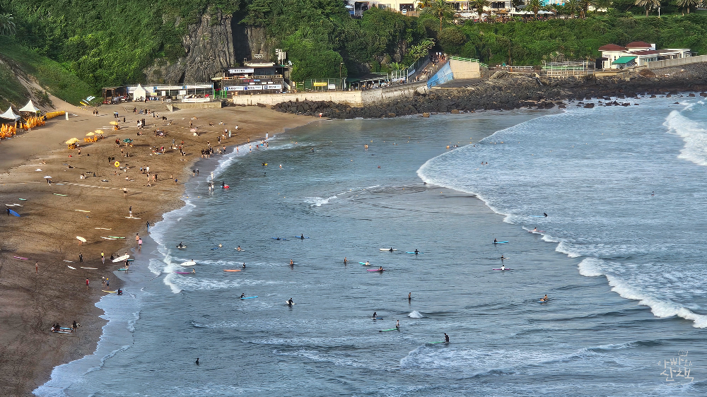 5성 호텔들이 모여 있는 중문관광단지와 이어진 해수욕장입니다. 파도가 센 편이어서 파도타기를 즐기는 서퍼들이 해수욕객보다 더 많은 것이 특징입니다. 수심이 깊어 아이들과 해수욕하기에는 각별한 주의가 필요합니다. 초보자를 위한 체험 서핑 교실들이 많이 운영되고 있어서 특별한 추억에 도전해 볼 수 있습니다.
