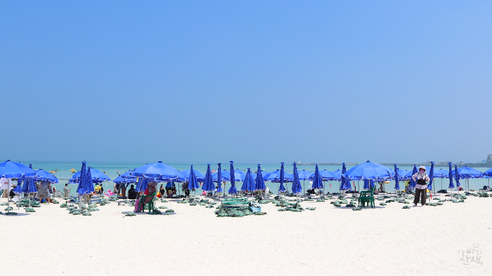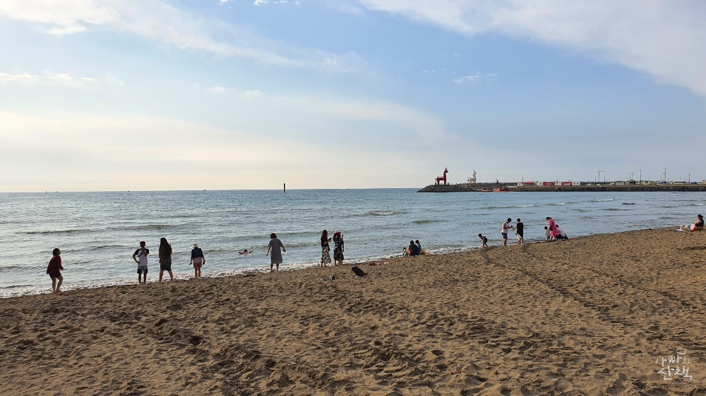 파도는 세지 않은 편이고 규모에 비해 아주 붐비지는 않아서 상대적으로 여유 있게 느껴지기도 합니다. 해수욕장 주변으로 풍력발전기가 보이는 이국적인 풍경이 특히 멋진 곳입니다.
