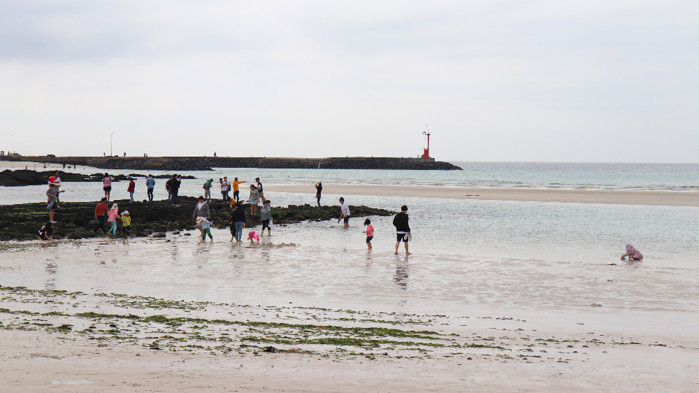 해수욕장의 모래가 검은색으로 유명한 곳으로 시내에서 가까워 도민들이 많이 찾습니다. 검은 모래찜질이 몸에 좋다고 해서 모래찜질하는 모습을 많이 볼 수 있습니다.