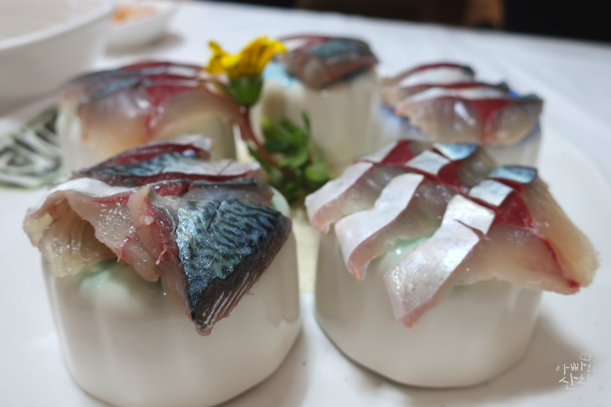 고등어회와 함께 고추냉이(와사비) 밥이 나오는 것이 이곳만의 특징으로, 양파절임과 함께 고등어 한 점을 얹어 깻잎에 싸 먹으면 별미입니다.