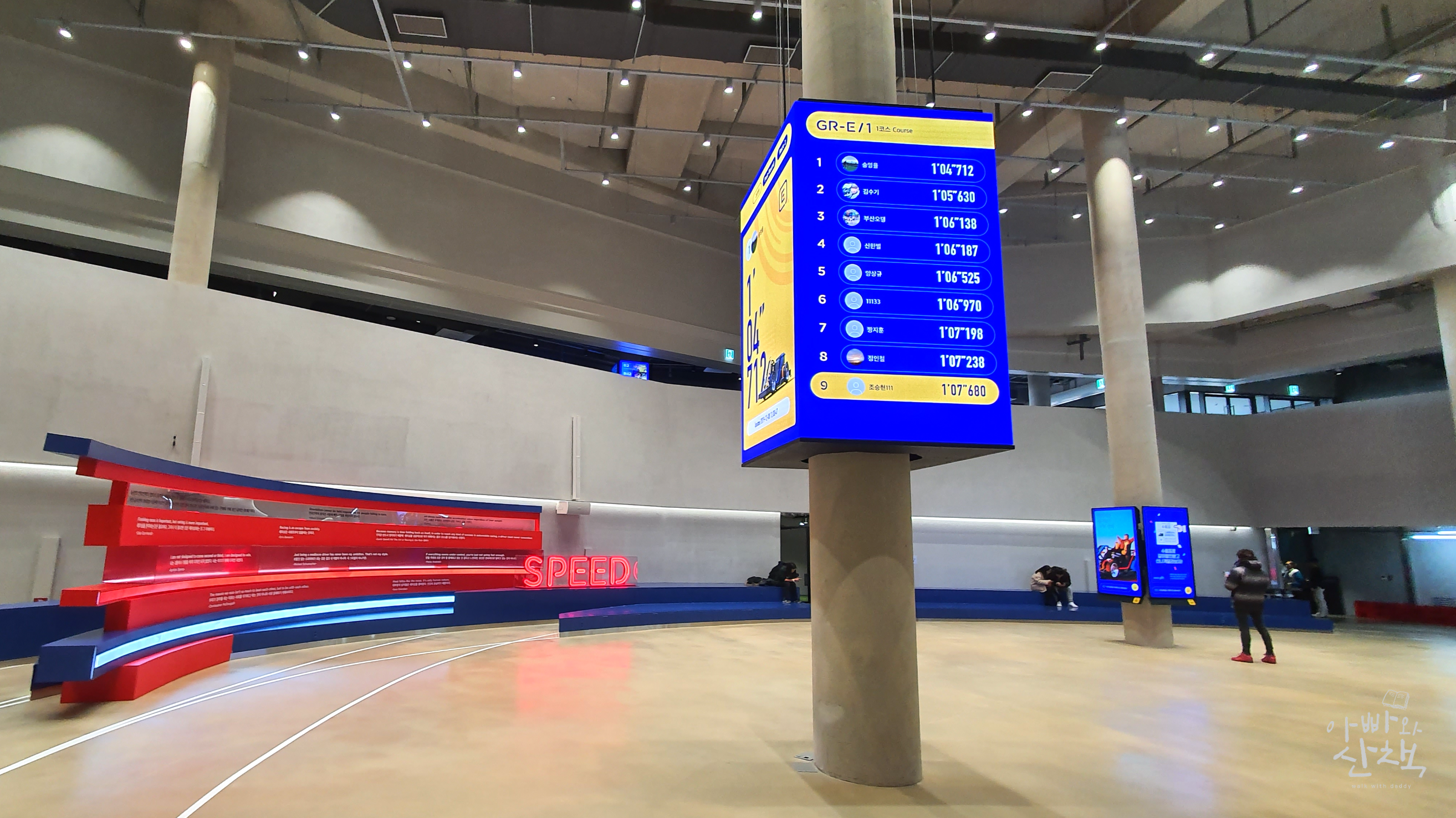 기둥에 달린 전광판에 나의 기록과 순위가 나옵니다. 아쉬우면 한번 더~~