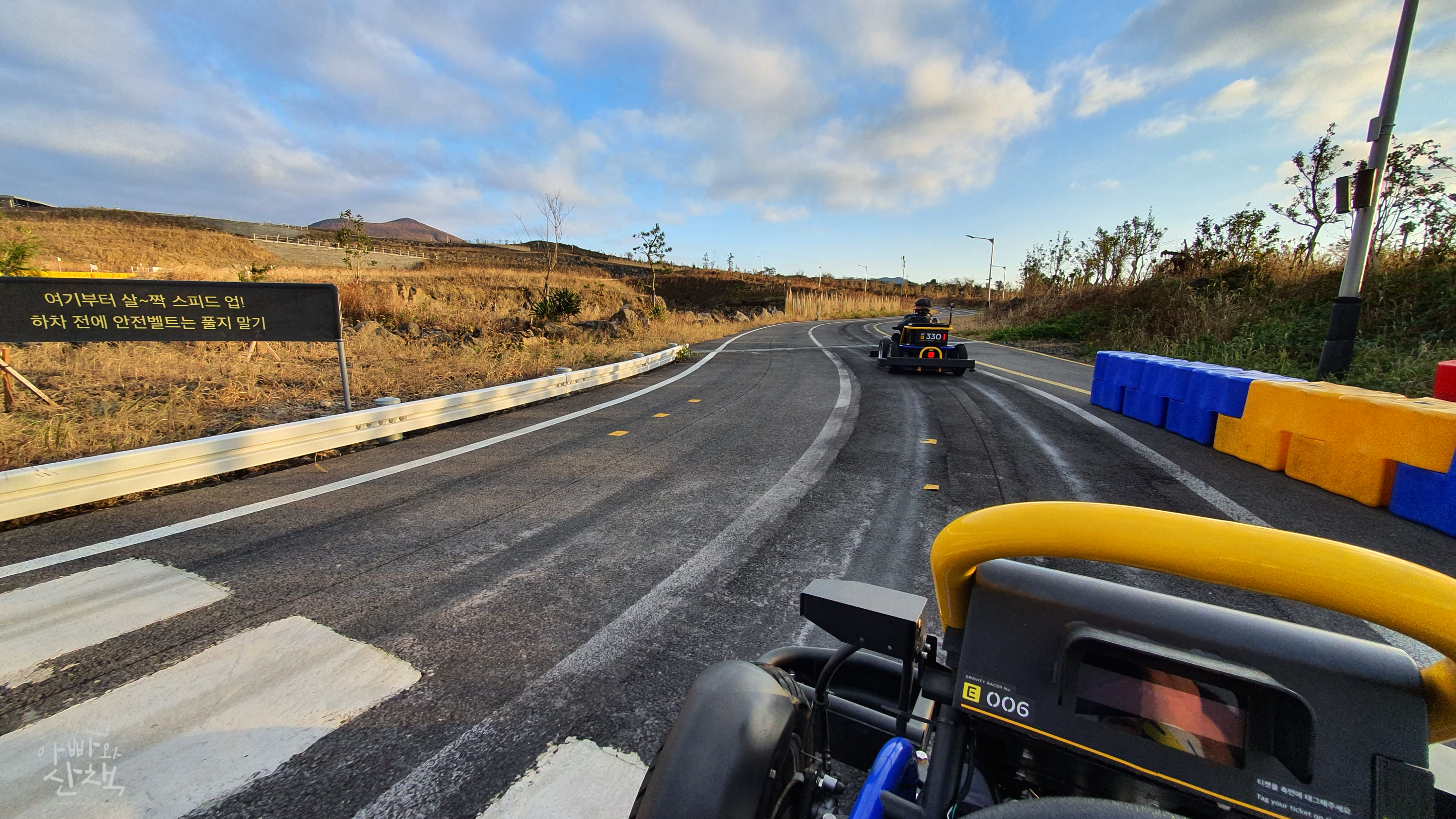 코스가 끝나면 언덕 위까지 자동 운전으로 이동하게 되는데 이 시간은 두 손을 놓고 제주의 풍경을 카메라에 마음껏 담을 수 있는 색다른 즐거움을 만끽할 수 있습니다.