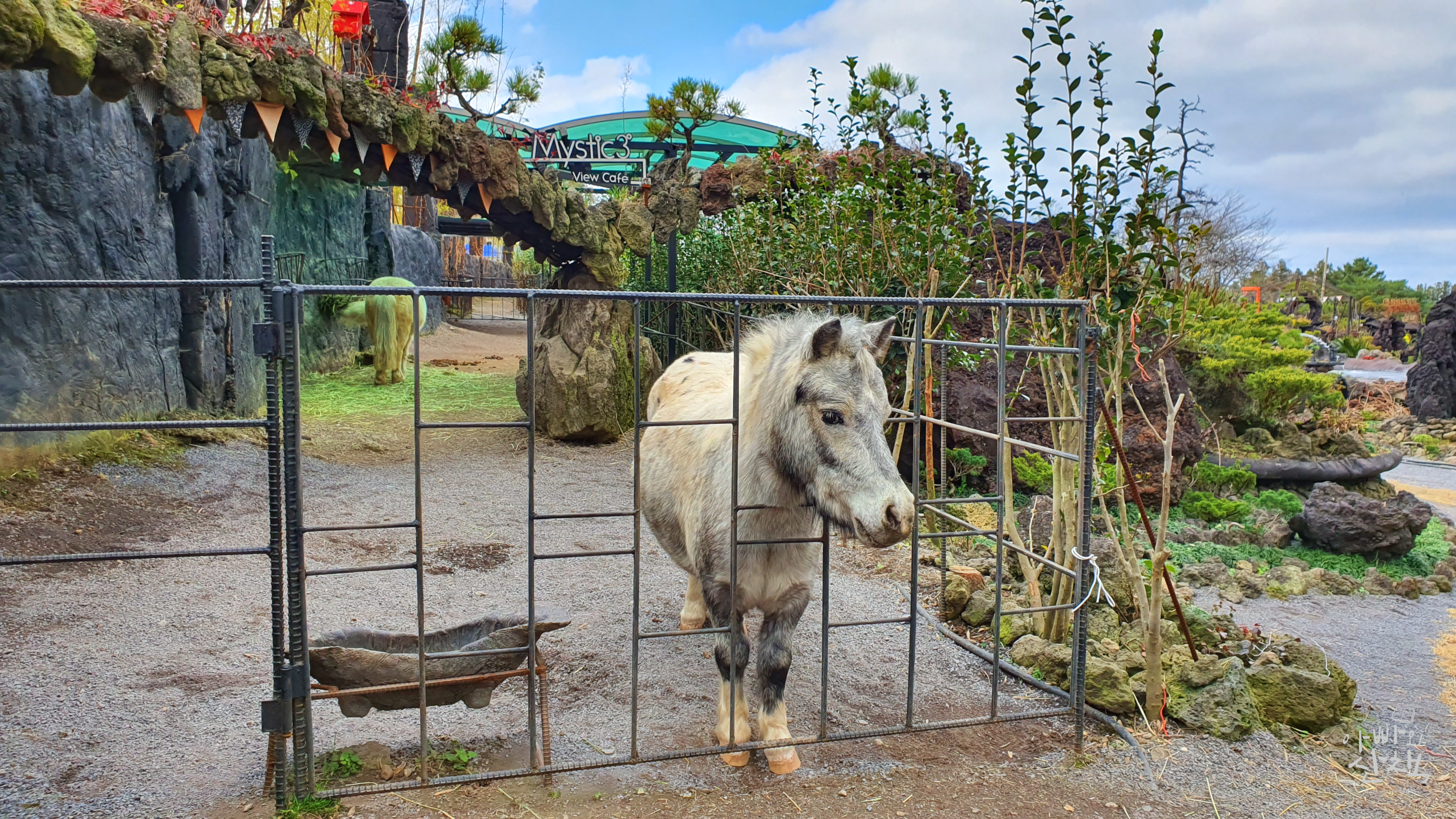 정원 한편에는 미스틱3도의 마스코트인 포니가 있어 간식으로 당근(500원)을 줄 수 있고 미니피그와 토끼 등도 구경할 수 있습니다.