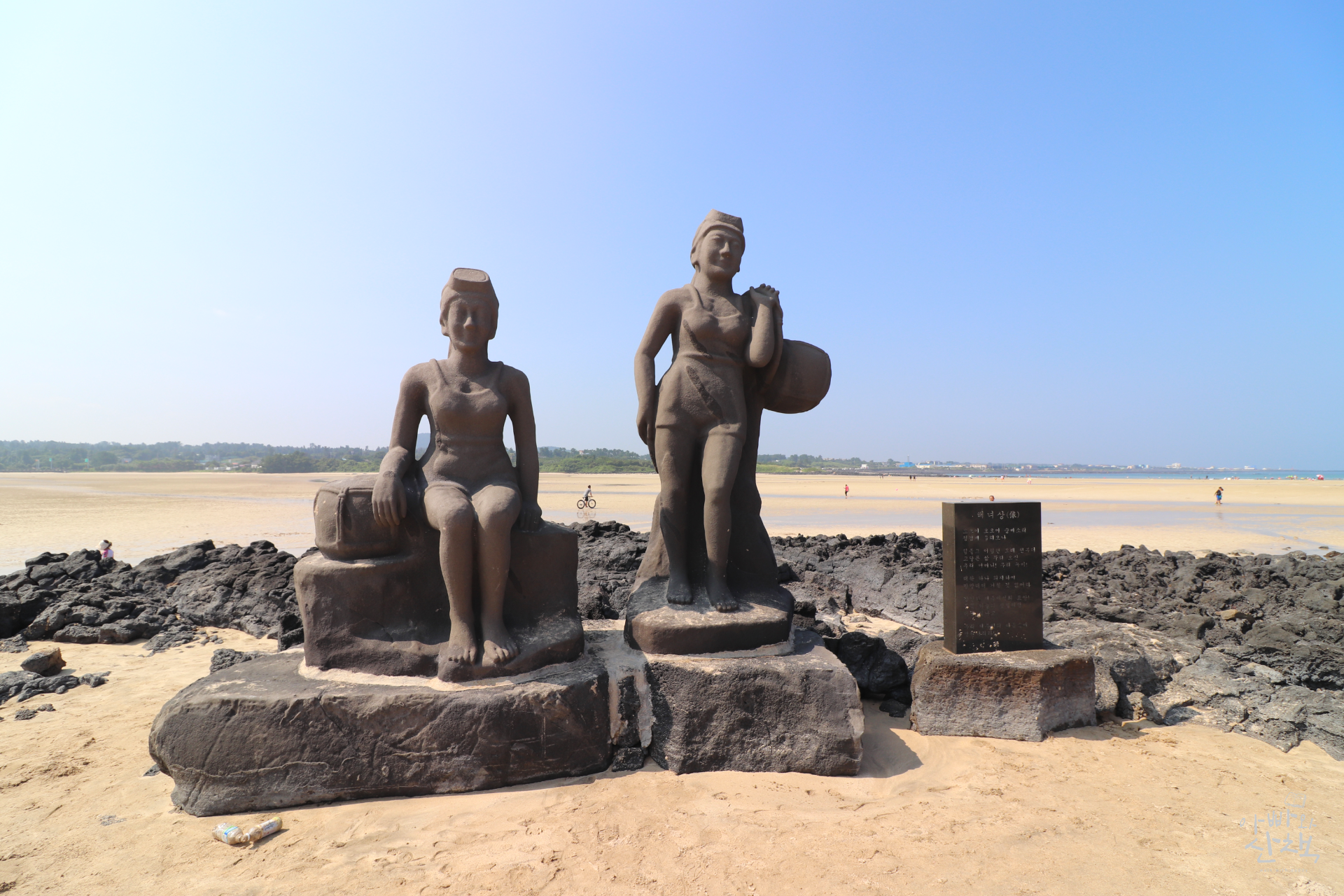 8만여 평에 이르는 드넓은 백사장과 에메랄드빛 바닷물로 유명한 제주 동남부 지역의 대표적인 해수욕장입니다. 바닷물은 수심이 얕고 파도가 잔잔할 뿐만 아니라 썰물에 드러나는 백사장 크기가 매우 넓어서 아이들이 물놀이와 모래 장난하며 놀기에 좋아서 가족 여행자들에게 특히 인기가 있습니다. 큰 규모만큼 해수욕장 개장 기간에는 다양한 편의시설이 유료로 제공되며, 주변에 횟집과 흑돼지 전문점 등 다양한 음식점이 밀집된 거리가 있어서 물놀이 후 식사를 하기에도 편리합니다.