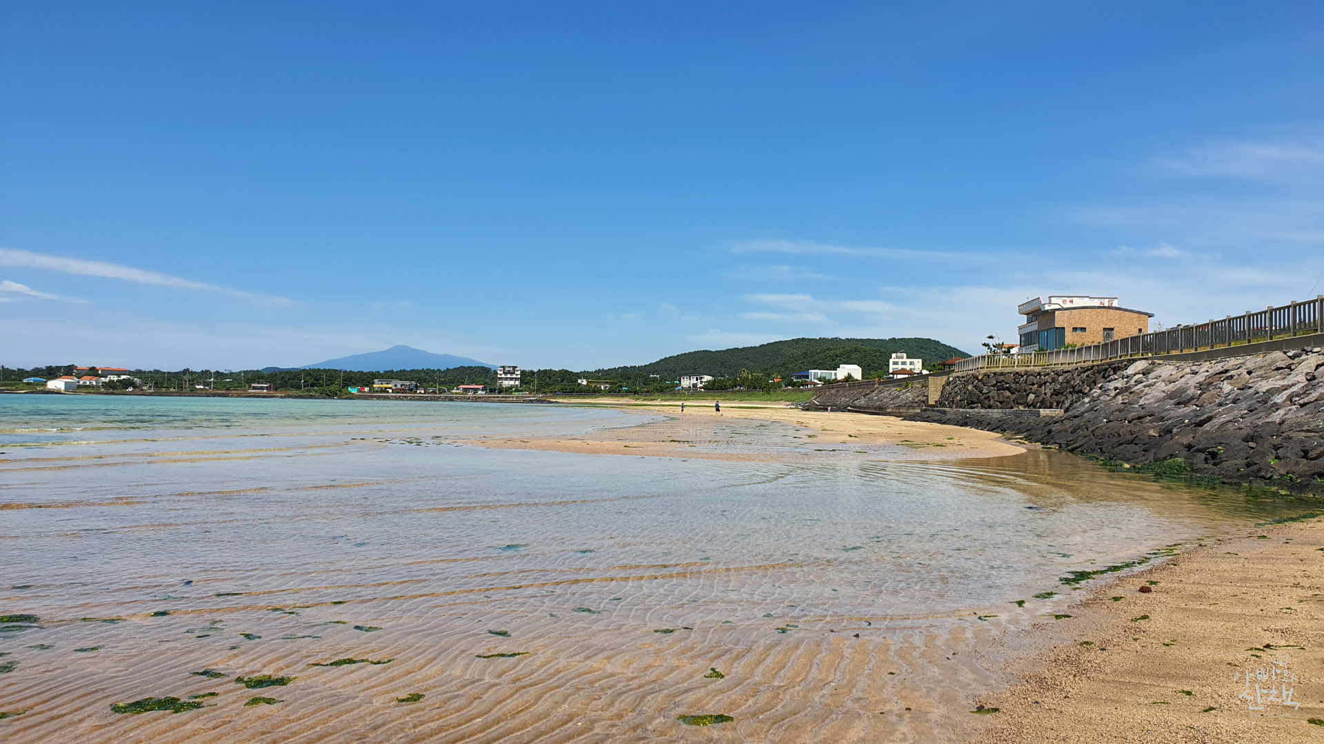 얕은 수심과 잔잔한 파도로 아이들과 가기 좋은 성산의 해수욕장