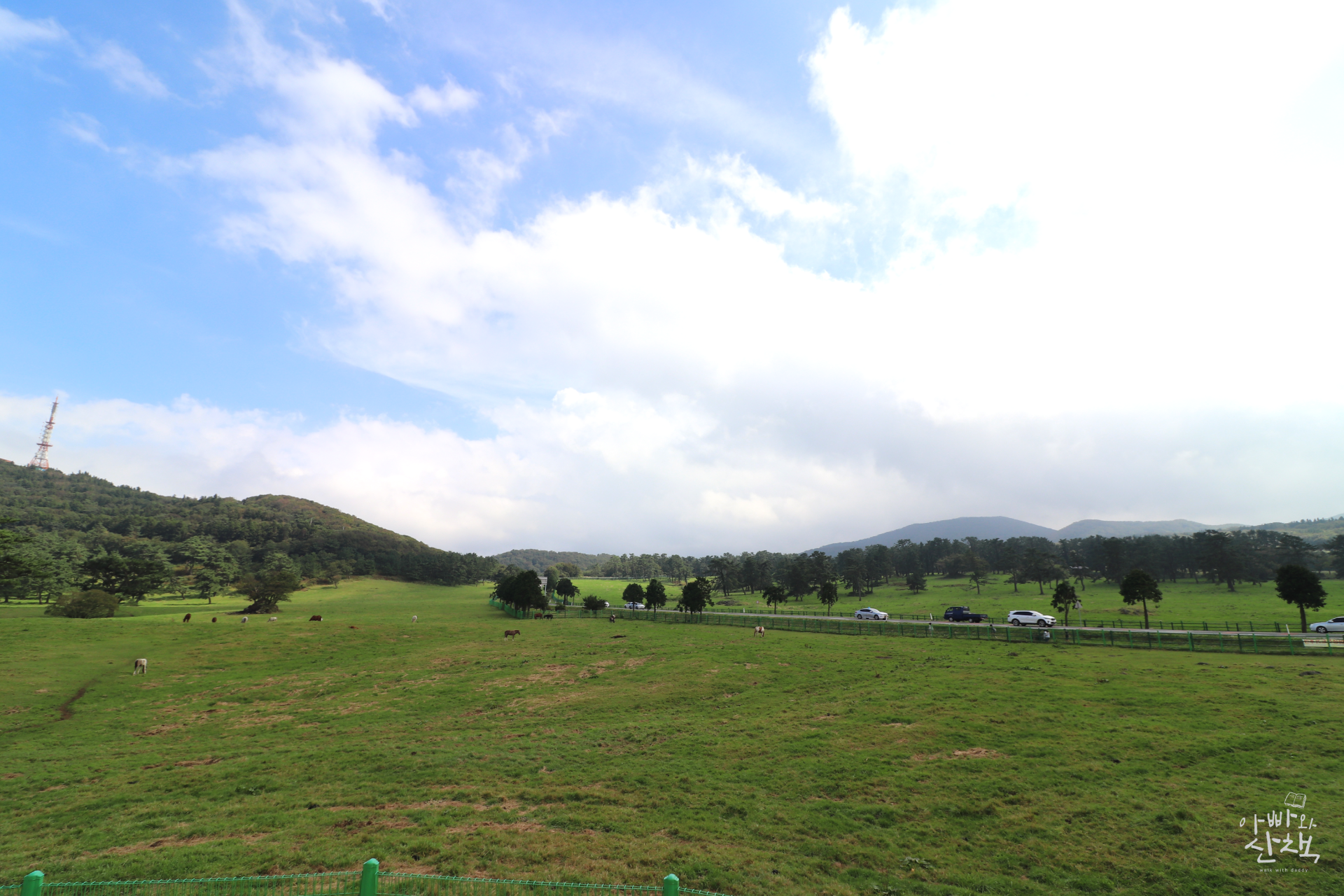 천연기념물 제주마를 방목하는 516 도로변의 초원지대