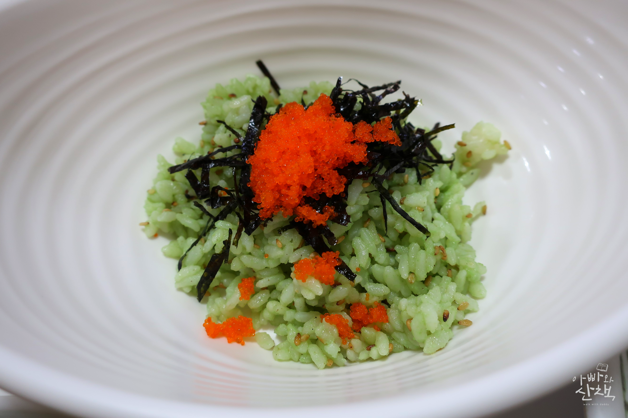 신선한 고등어의 경우 비린 맛 없이 고소하지만, 기름이 많은 생선이다 보니 먹다 보면 살짝 기름진 맛이 느껴지게 마련인데, 고추냉이 밥은 이런 걱정 없이 끝까지 담백한 맛을 느끼게 해 줍니다.